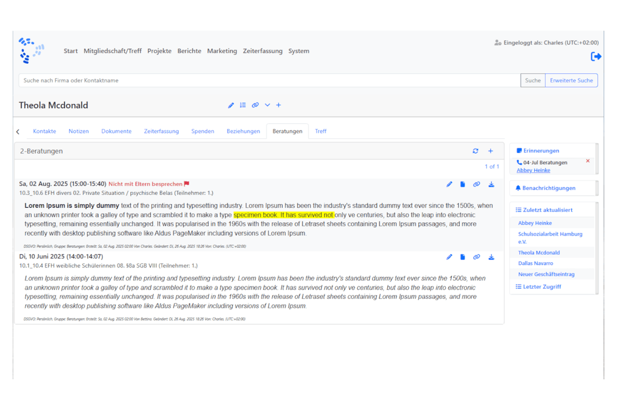 Coordinator is a browser-based CRM software that offers functions specially tailored to the needs of professional social work in the areas of § 11 and § 13 SGB VIII. Standard reporting includes dashboards and statistical analyses that demonstrate the qualitative and quantitative effectiveness of the work.